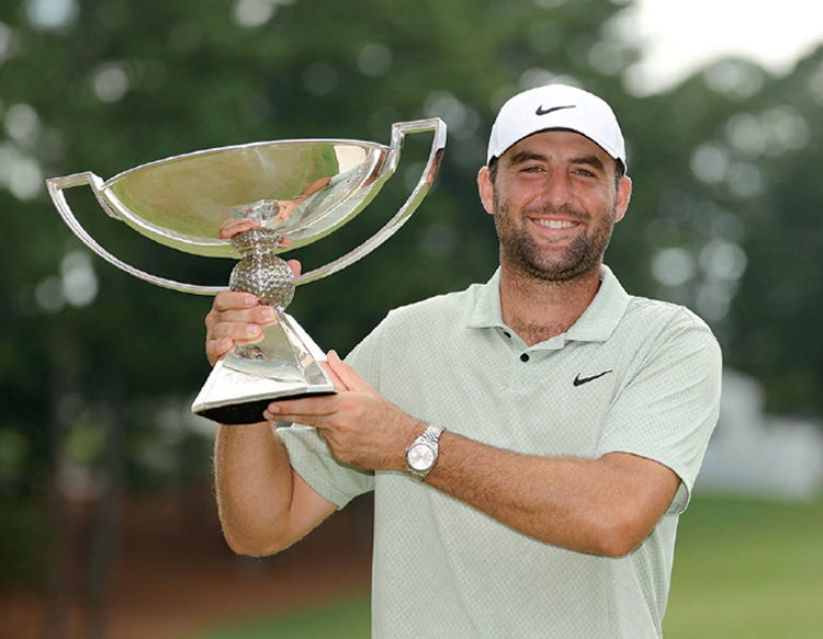 2024년 미국프로골프(PGA)투어 플레이오프 최종전인 투어 챔피언십이 막을 내린 9월 1일은 ‘포스트 타이거 시대’를 연 셰플러의 대관식이 열린 날이었다. 이날 셰플러는 2위 콜린 모리카와를 4타 차로 이기고 시즌 우승자를 상징하는 페덱스컵과 보너스 2500만달러를 거머쥐었다. 시즌 7승을 거둔 셰플러는 18번 홀 그린 옆에서 기다리던 아내 메러디스에게 태어난 지 석 달 지난 아들 베넷을 받아 번쩍 안아 올리며 기뻐했다. 아이가 울음을 터뜨리려 하자 당황해서 어쩔 줄 몰라 하는 셰플러 모습에 팬들은 함박웃음을 지었다. 페덱스컵 순위 30명이 겨루는 투어 챔피언십에서 셰플러는 2전 3기 끝에 우승했다. 셰플러는 2022년과 지난해 페덱스컵 포인트 1위로 투어 챔피언십을 시작했으나 각각 로리 매킬로이(35·북아일랜드)와 빅토르 호블란(노르웨이)에게 역전패했던 아쉬움을 풀었다.